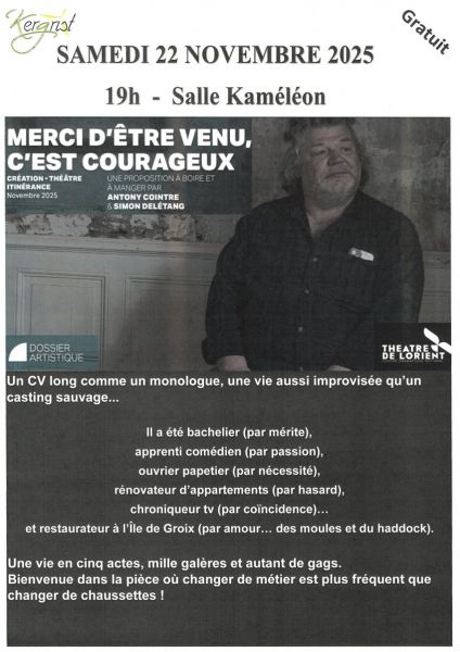 théâtre Anthony Cointre samedi 22 novembre 2025 Salle Kaméléon 19h00 gratuit