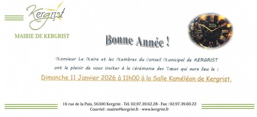 vœux du maire 2026 le 11 janvier 2025 11H00 Salle Kaméléon