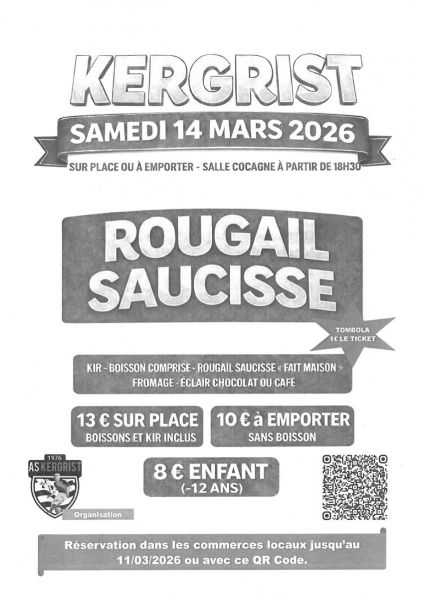 Rougail saucisse 14 mars AS Kergrist Salle Cocagne à partie de 18h30