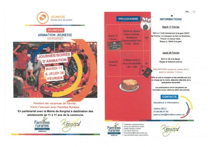 animation jeunesse vacance mardi 17 février et jeudi 26 février